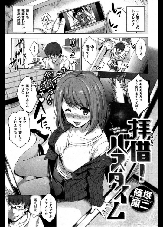 隣の部屋のお姉さんが排水溝が詰まっているとかで風呂を入りに来るwww今日も変わらずやってきたんだがタオルを忘れててそれでシコってたら見つかってそれから。。。。。【篠塚醸二 同人誌・エロ漫画】